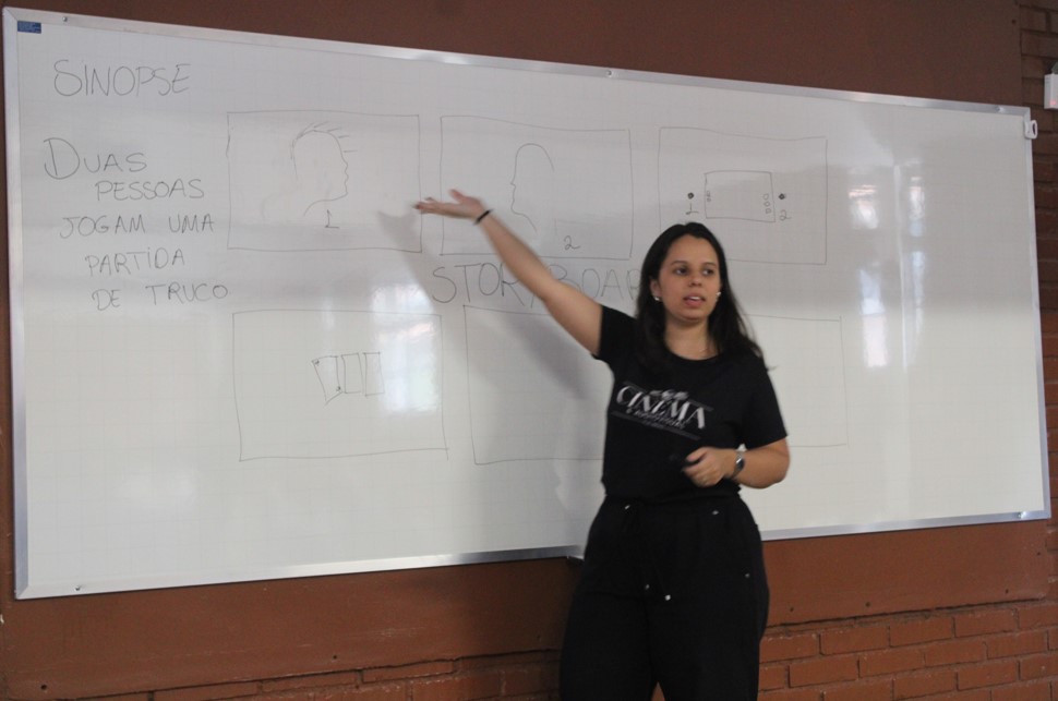 Na manhã do dia 25 do último mês, o projeto de extensão “Cinema na PUC” realizou a segunda e última oficina na Escola Estadual Odilon Behrens. O projeto deixou uma marca significativa na formação dos estudantes e na rotina escolar da escola. Ao longo das atividades, os alunos puderam vivenciar de forma prática o processo de criação audiovisual desde a concepção das ideias até a gravação e finalização dos curtas. Essa experiência proporcionou um novo olhar sobre o cinema, a comunicação e a importância da expressão criativa na vida dos estudantes.
