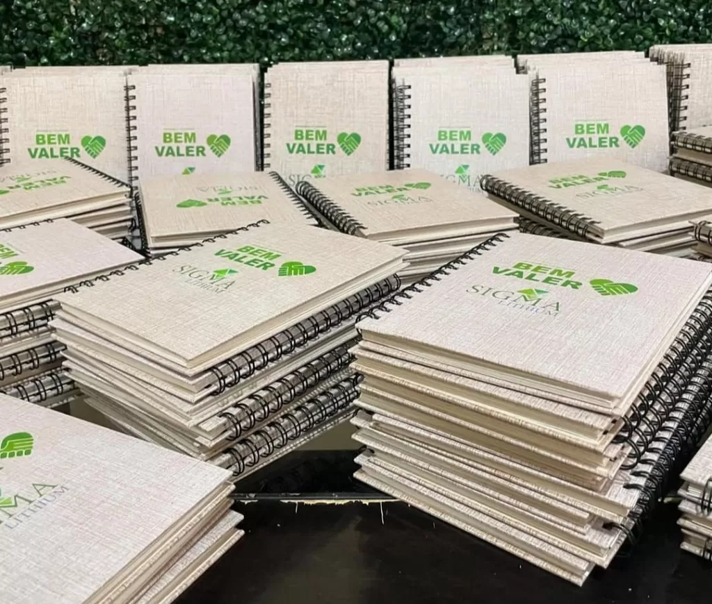 Já Cida, que antes vendia cerca de oito itens por mês, agora comemora uma média de 25 vendas mensais. A procura por agendas (R$75,00 a R$100,00) saltou de três para 10 unidades por mês, e os cadernos(R$55,00), de um para 10, quase todos encomendados por funcionários da Sigma. Com orgulho, ela destaca: “Hoje eu tenho máquinas para minha produção e consegui comprar por meio dessas vendas! E também fiz cursos de empreendedorismo.”