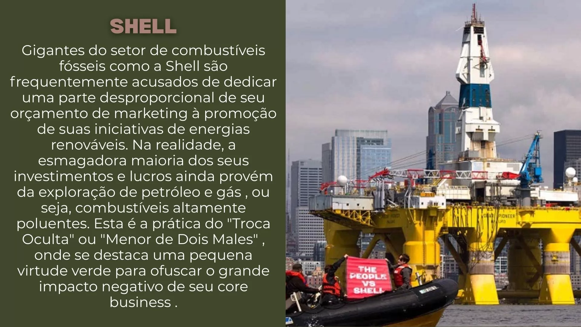 Segundo ele, as propagandas sobre reciclagem e redução de carbono têm o objetivo de transferir a responsabilidade para o consumidor e fazer uma “cortina de fumaça” no real causador. “Claro que nós temos uma responsabilidade com o consumidor também, mas não totalmente como querem nos obrigar”.