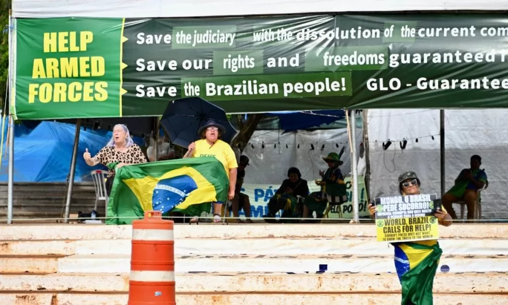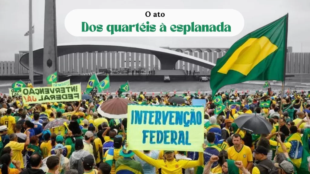 Essas manifestações se intensificaram com protestos massivos em frente a quartéis e unidades militares. O objetivo era pressionar as Forças Armadas a agir como um suposto “poder moderador” e reverter o resultado eleitoral, uma interpretação distorcida do artigo 142 da Constituição. Apesar das pautas claramente antidemocráticas e golpistas, não houve repressão imediata por parte das forças de segurança. As investigações apontam para omissão.